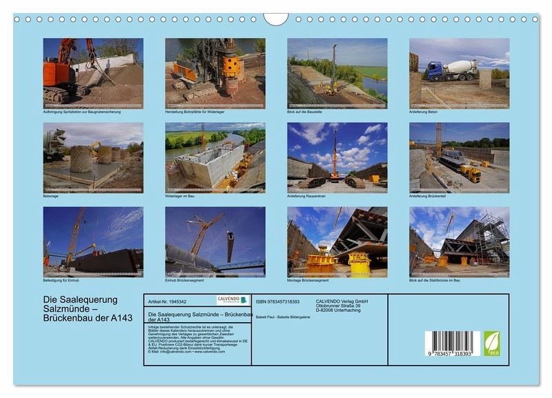 QUALITÄT - Hochwertiger Fotokalender mit 12 wunderschönen Motiven auf lichtbeständigem Bilderdruckpapier, robuste Spiralbindung mit Aufhängebügel.NACHHALTIG - deutliche Abfallreduzierung durch bedarfsgerechte Einzelstückfertigung, umweltfreundliches FSC-zertifiziertes Papier, Produktion in Deutschland, klimabewusste Logistik.PERFEKTES GESCHENK - Kalender für Freunde undFamilie, für Kinder und Erwachsene, jung und alt, zu Weihnachten, Geburtstag oder zwischendurch.VIELFALT - Bildkalender in verschiedenen Formaten, z.B. DIN A5, DIN A4, DIN A3 sowie DIN A2. Ob Naturmotiv, Gemälde oder Fotos, ideal für ein persönliches Wohlfühlambiente.Bauphasen der Saalequerung Salzmünde in Bildern von Autor(in): Babett's Bildergalerie