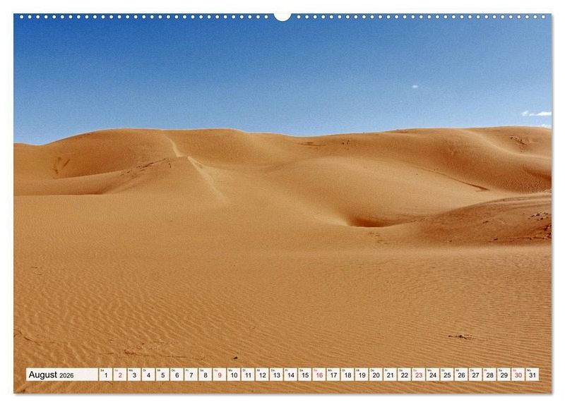 Besonders das südliche Marokko wird von der Sahara geprägt. Marokkos Wüstenregionen sind ungemein vielfältig und zählen zu den schönsten der Welt. Der Autor bereiste mehrfach dieses faszinierende Königreich im Norden Afrikas, durchquerte dabei auch zu Fuß und im Jeep verschiedene Wüstengebiete und zeigt im Kalender eine Auswahl seiner beeindruckenden Wüstenbilder.
