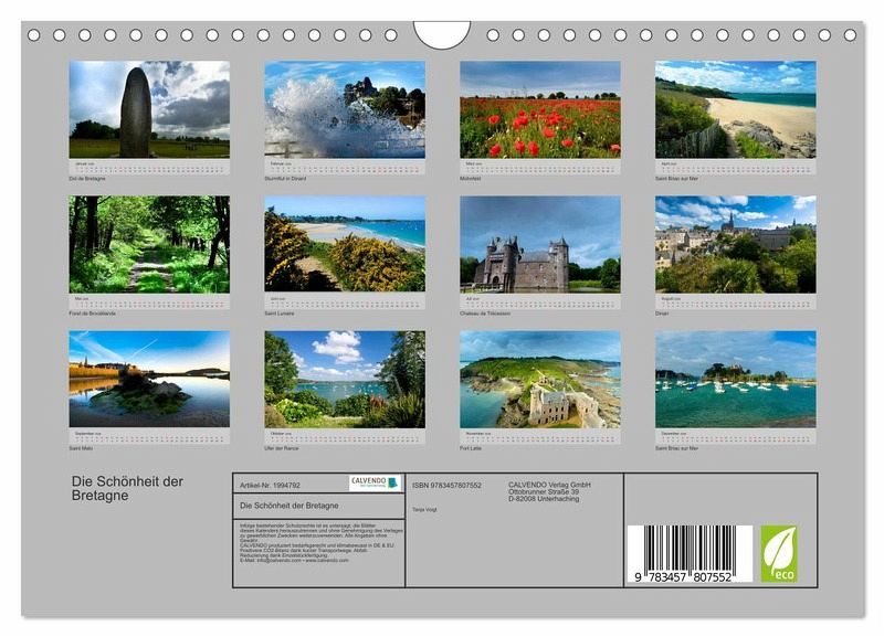 QUALITÄT - Hochwertiger Fotokalender mit 12 wunderschönen Motiven auf lichtbeständigem Bilderdruckpapier, robuste Spiralbindung mit Aufhängebügel.NACHHALTIG - deutliche Abfallreduzierung durch bedarfsgerechte Einzelstückfertigung, umweltfreundliches FSC-zertifiziertes Papier, Produktion in Deutschland, klimabewusste Logistik.PERFEKTES GESCHENK - Kalender für Freunde und Familie, für Kinder und Erwachsene, jung und alt, zu Weihnachten, Geburtstag oder zwischendurch.VIELFALT - Bildkalender in verschiedenen Formaten, z.B. DIN A5, DIN A4, DIN A3 sowie DIN A2. Ob Naturmotiv, Gemälde oder Fotos, ideal für ein persönliches Wohlfühlambiente.Die abwechslungsreichen Küsten und Gegenden im äußersten Westen Frankreichs von Autor(in): Midgardson