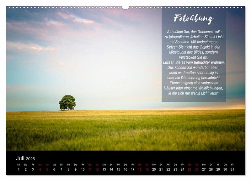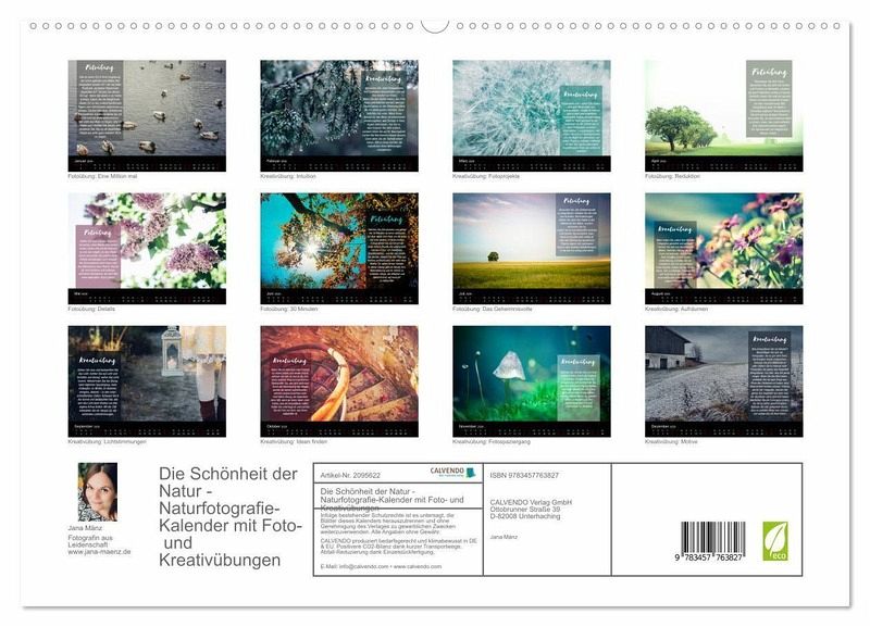 PREMIUM-LINIE - Brillanter Fotokalender mit 12 wunderschönen Motiven, Kunstdruck in Hochglanz in Museumsqualität.QUALITÄT - edle Materialien, stabile Rückwand mit 2 innovativen Einstecktaschen für eine optimale Präsentation an der Wand.NACHHALTIG - deutliche Abfallreduzierung durch bedarfsgerechte Einzelstückfertigung, umweltfreundliches FSC-zertifiziertes Papier, Produktion in Deutschland, klimabewusste Logistik.PERFEKTES GESCHENK - Kalender für Freunde und Familie, für Kinder und Erwachsene, jung und alt, zu Weihnachten, Geburtstag oder zwischendurch.Traumhafte Naturfotos mit Foto- und Kreativübungen von Autor(in): Jana Mänz