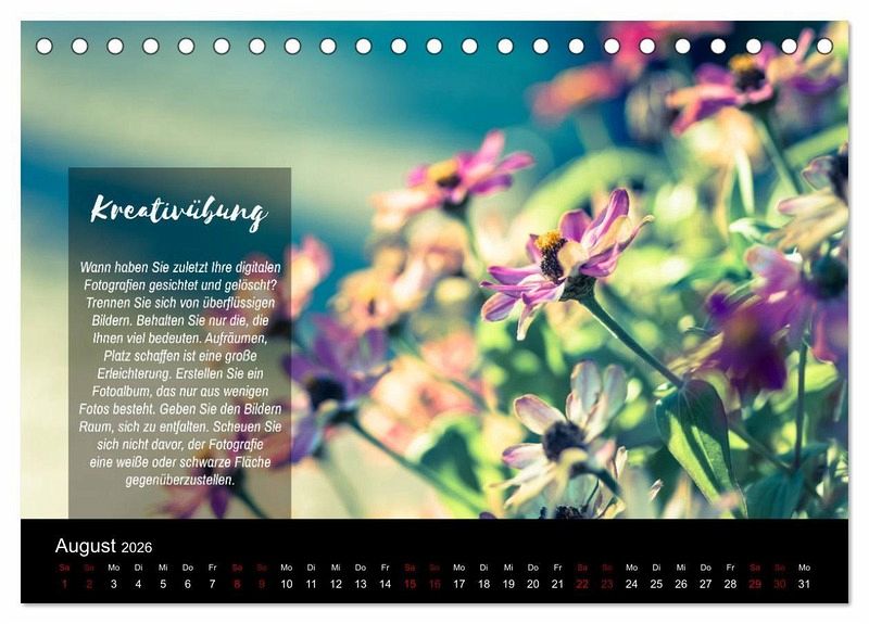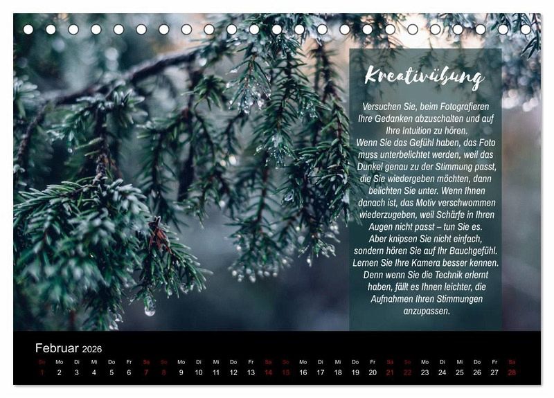 QUALITÄT - Hochwertiger Fotokalender mit 12 wunderschönen Motiven auf lichtbeständigem Bilderdruckpapier, robuste Spiralbindung.NACHHALTIG - deutliche Abfallreduzierung durch bedarfsgerechte Einzelstückfertigung, umweltfreundliches FSC-zertifiziertes Papier, Produktion in Deutschland, klimabewusste Logistik.PERFEKTES GESCHENK - Kalender für Freunde und Familie, für Kinder und Erwachsene, jung und alt, zu Weihnachten, Geburtstag oder zwischendurch.VIELFALT - Bildkalender in verschiedenen Formaten, z.B. DIN A5, DIN A4, DIN A3 sowie DIN A2. Ob Naturmotiv, Gemälde oder Fotos, ideal für ein persönliches Wohlfühlambiente.Traumhafte Naturfotos mit Foto- und Kreativübungen von Autor(in): Jana Mänz