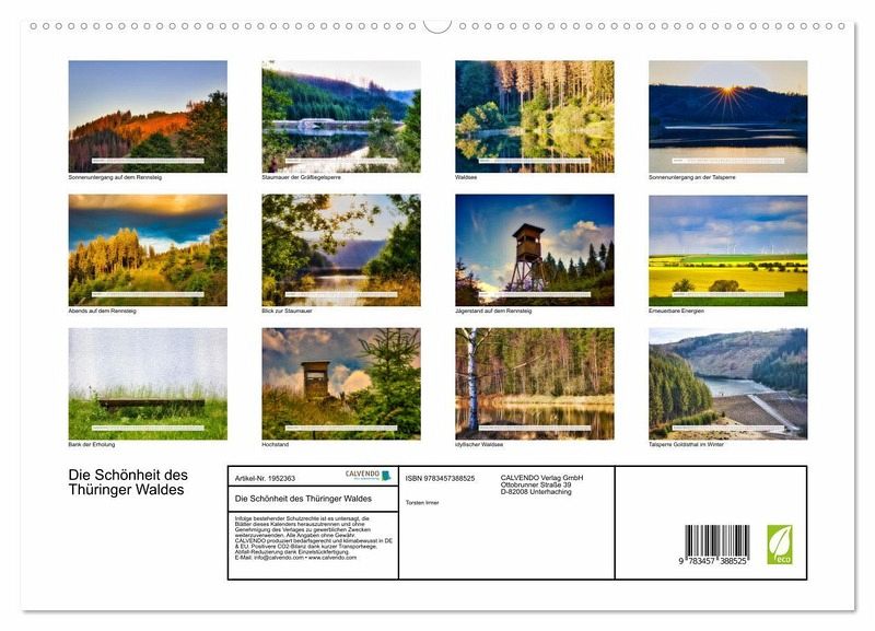 PREMIUM-LINIE - Brillanter Fotokalender mit 12 wunderschönen Motiven, Kunstdruck in Hochglanz in Museumsqualität.QUALITÄT - edle Materialien, stabile Rückwand mit 2 innovativen Einstecktaschen für eine optimale Präsentation an der Wand.NACHHALTIG - deutliche Abfallreduzierung durch bedarfsgerechte Einzelstückfertigung, umweltfreundliches FSC-zertifiziertes Papier, Produktion in Deutschland, klimabewusste Logistik.PERFEKTES GESCHENK - Kalender für Freunde und Familie, für Kinder und Erwachsene, jung und alt, zu Weihnachten, Geburtstag oder zwischendurch.Der Thüringer Wald bietet einfach alles, Seen, Wälder, Talsperren, einfach Natur pur von Autor(in): Torsten Irmer