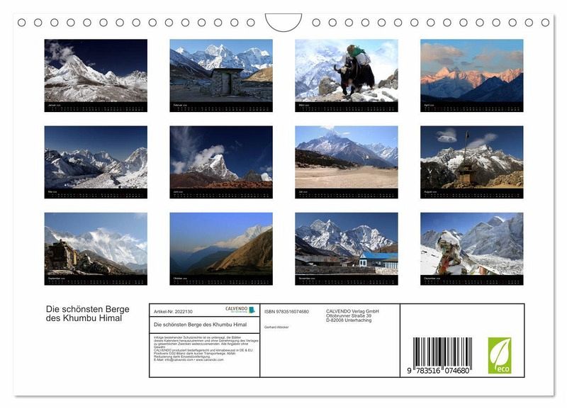 QUALITÄT - Hochwertiger Fotokalender mit 12 wunderschönen Motiven auf lichtbeständigem Bilderdruckpapier, robuste Spiralbindung mit Aufhängebügel.NACHHALTIG - deutliche Abfallreduzierung durch bedarfsgerechte Einzelstückfertigung, umweltfreundliches FSC-zertifiziertes Papier, Produktion in Deutschland, klimabewusste Logistik.PERFEKTES GESCHENK - Kalender für Freunde und Familie, für Kinder und Erwachsene, jung und alt, zu Weihnachten, Geburtstag oder zwischendurch.VIELFALT - Bildkalender in verschiedenen Formaten, z.B. DIN A5, DIN A4, DIN A3 sowie DIN A2. Ob Naturmotiv, Gemälde oder Fotos, ideal für ein persönliches Wohlfühlambiente.Khumbu oder Khumbu Himal ist eine Region des Himalaya im Nordosten Nepals an der Grenze zu Tibet. In ihr liegt der Sagarmatha-Nationalpark mit dem Mount Everest. von Autor(in): Gerhard Albicker
