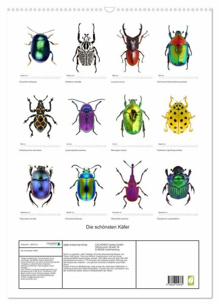 Premium-Bildkalender mit zwölf faszinierenden Nahaufnahmen der schönsten Käfer. Professionelle Makrofotografien in Galeriequalität. Feinste Details, brillante Farben, zeitloses Design. Eine Idee von Wildlife Art Print.