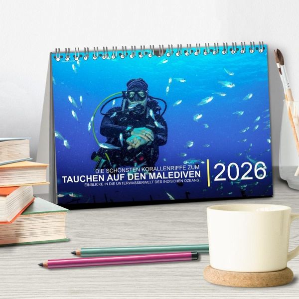 Die Malediven gehören zu den beliebtesten Reisezielen zum Tauchen und bieten eine farbenfrohe Unterwasserwelt mit wunderbaren Korallenriffen. Dieser Kalender nimmt sie Monat für Monat mit auf eine Reise an die schönsten Tauchplätze der Malediven, wo sie Mantas, Meeresschildkröten, Haien und zahlreichen anderen Bewohnern der Meere begegnen.