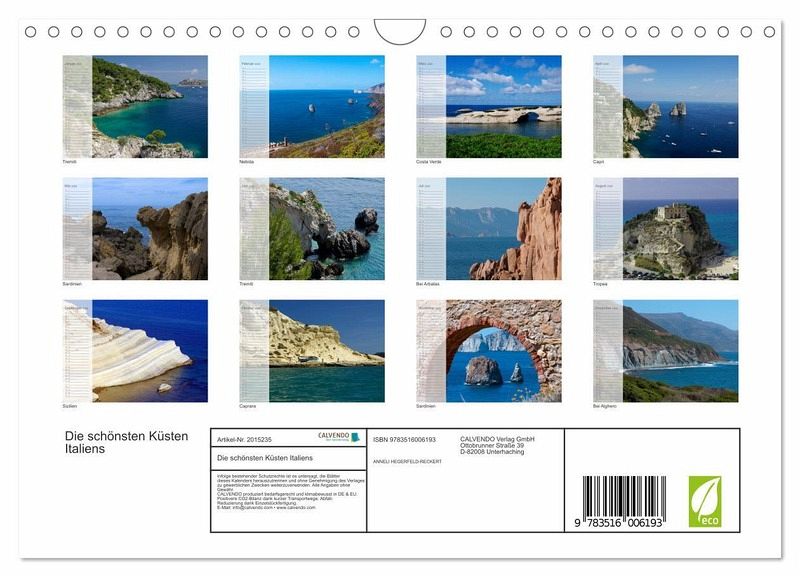 QUALITÄT - Hochwertiger Fotokalender mit 12 wunderschönen Motiven auf lichtbeständigem Bilderdruckpapier, robuste Spiralbindung mit Aufhängebügel.NACHHALTIG - deutliche Abfallreduzierung durch bedarfsgerechte Einzelstückfertigung, umweltfreundliches FSC-zertifiziertes Papier, Produktion in Deutschland, klimabewusste Logistik.PERFEKTES GESCHENK - Kalender für Freunde und Familie, für Kinder und Erwachsene, jung und alt, zu Weihnachten, Geburtstag oder zwischendurch.VIELFALT - Bildkalender in verschiedenen Formaten, z.B. DIN A5, DIN A4, DIN A3 sowie DIN A2. Ob Naturmotiv, Gemälde oder Fotos, ideal für ein persönliches Wohlfühlambiente.Küsten von Apulien bis Sizilien bringen mit diesen faszinierenden Fotografien Ruhe und Entspannung. von Autor(in): Anneli Hegerfeld-Reckert