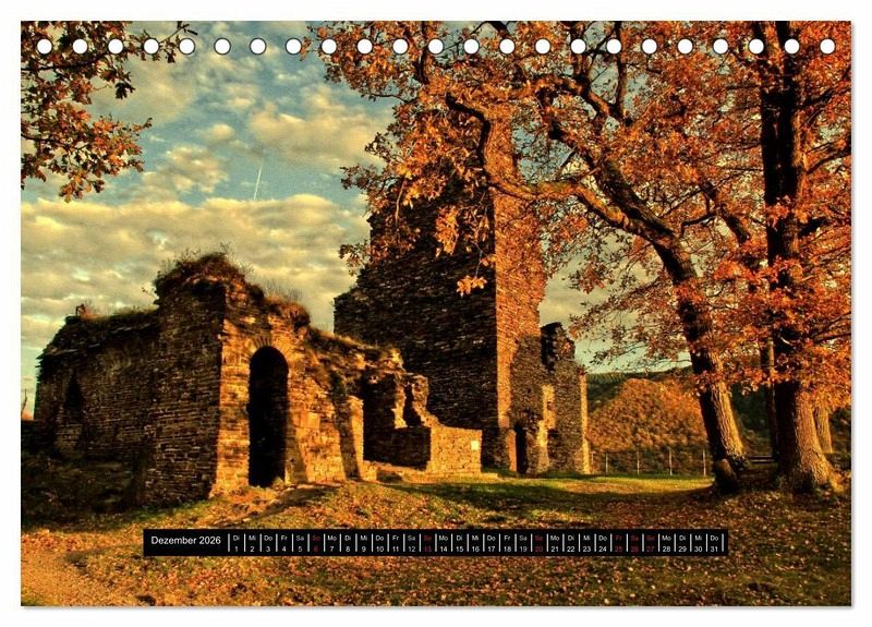 Mit zu den schönsten Landschaften in Deutschland zählt das Ahrtal. Bekannt durch seine Weinberge und Feste. Der Rotweiwanderweg zieht jedes Jahr tausende Besucher in ihren Bann. Herrliche und unvergessliche Wanderungen sind in diesem schönen Ahrtal überall gegeben. Ein Highlight ist die Burgruine Are in Altenahr. Im Kalender sind herrliche Eindrücke von diesem schönen Fleck in Deutschland fest verankert.