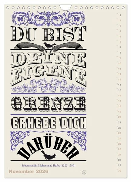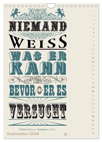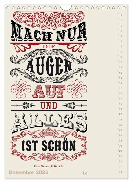 Abbildungen: Januar: Gib jedem Tag die Chance, der schönste deines Lebens zu werden. Februar: Das Gestern ist fort, das Morgen nicht da. Lebe also heute. März: Heiterkeit ist der Ursprung aller glücklichen Einfälle. April: Das Leben ist bezaubernd. Man muss es nur durch die richtige Brille sehen. Mai: Wer den Himmel nicht in sich selber trägt, sucht ihn vergebens...…mehr