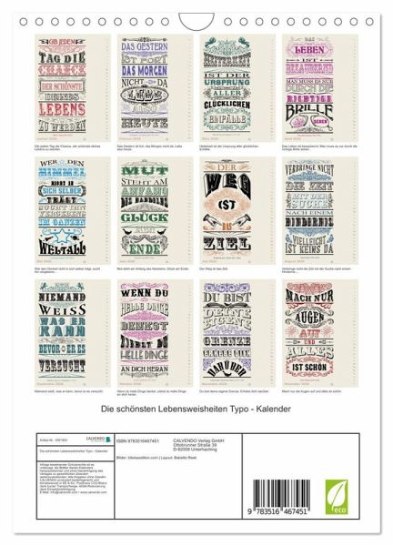 QUALITÄT - Hochwertiger Fotokalender mit 12 wunderschönen Motiven auf lichtbeständigem Bilderdruckpapier, robuste Spiralbindung mit Aufhängebügel.NACHHALTIG - deutliche Abfallreduzierung durch bedarfsgerechte Einzelstückfertigung, umweltfreundliches FSC-zertifiziertes Papier, Produktion in Deutschland, klimabewusste Logistik.PERFEKTES GESCHENK - Kalender für Freunde und Familie, für Kinder und Erwachsene, jung und alt, zu Weihnachten, Geburtstag oder zwischendurch.VIELFALT - Bildkalender in verschiedenen Formaten, z.B. DIN A5, DIN A4, DIN A3 sowie DIN A2. Ob Naturmotiv, Gemälde oder Fotos, ideal für ein persönliches Wohlfühlambiente.Die schönsten Lebensweisheiten und kluge Sprüche Deines Jahres von Autor(in): bilwissedition