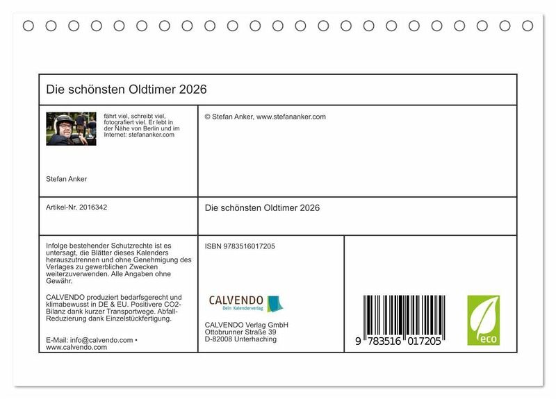 QUALITÄT - Hochwertiger Fotokalender mit 12 wunderschönen Motiven auf lichtbeständigem Bilderdruckpapier, robuste Spiralbindung.NACHHALTIG - deutliche Abfallreduzierung durch bedarfsgerechte Einzelstückfertigung, umweltfreundliches FSC-zertifiziertes Papier, Produktion in Deutschland, klimabewusste Logistik.PERFEKTES GESCHENK - Kalender für Freunde und Familie, für Kinder und Erwachsene, jung und alt, zu Weihnachten, Geburtstag oder zwischendurch.VIELFALT - Bildkalender in verschiedenen Formaten, z.B. DIN A5, DIN A4, DIN A3 sowie DIN A2. Ob Naturmotiv, Gemälde oder Fotos, ideal für ein persönliches Wohlfühlambiente.Schöne Fotos von lebendigen Oldtimern von Autor(in): Stefan Anker