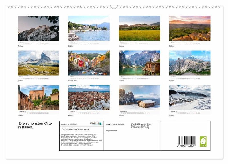 PREMIUM-LINIE - Brillanter Fotokalender mit 12 wunderschönen Motiven, Kunstdruck in Hochglanz in Museumsqualität.QUALITÄT - edle Materialien, stabile Rückwand mit 2 innovativen Einstecktaschen für eine optimale Präsentation an der Wand.NACHHALTIG - deutliche Abfallreduzierung durch bedarfsgerechte Einzelstückfertigung, umweltfreundliches FSC-zertifiziertes Papier, Produktion in Deutschland, klimabewusste Logistik.PERFEKTES GESCHENK - Kalender für Freunde und Familie, für Kinder und Erwachsene, jung und alt, zu Weihnachten, Geburtstag oder zwischendurch.Erleben Sie Italien wie nie zuvor. von Autor(in): Benjamin Lederer