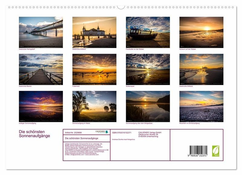 Nirgendwo sind die Sonnenaufgänge schöner als auf der Insel Usedom. Das sagen zumindest die Einheimischen. Lassen Sie sich mit diesem Kalender davon überzeugen, dass in diesem Satz eine Menge Wahrheit steckt.