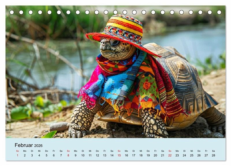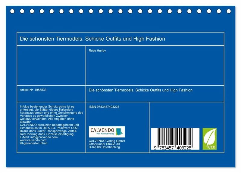 Dieser tolle Kalender zeigt die unterschiedlichsten Tiere in farbenfroher Kleidung. Alle Illustrationen wurden mit Hilfe von KI erstellt und zaubern jedem Betrachter ein Lächeln ins Gesicht. Ob duftige Blumenhüte oder knallige Sonnenbrillen, diese Tiere sind echte Fashionistas und wissen wie man sich extravagant in Szene setzt.