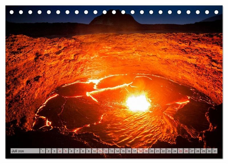 Der österreichische Fotograf Guenter Guni hat alle großen Berge Afrikas mehrfach bestiegen. Sein Hauptinteresse lag seit jeher bei den beeindruckenden Vulkanen des Kontinents. Dieser großartige Fotokalender zeigt die schönsten Vulkangebiete und führt zu bekannten Bergen wie Kilimanjaro und Mt. Kenya, aber auch zu schwer erreichbaren und weitgehend unbekannten Vulkanen in Tansania, Kenia, Äthiopien, Kongo, Ruanda und Uganda. Höhepunkte sind die äußerst aktiven Vulkane Nyiragongo (DR Kongo) und Erta Ale (Äthiopien) - deren flüssige Lava-Seen erlauben dem Betrachter einen Blick in das Innerste unserer Erde.