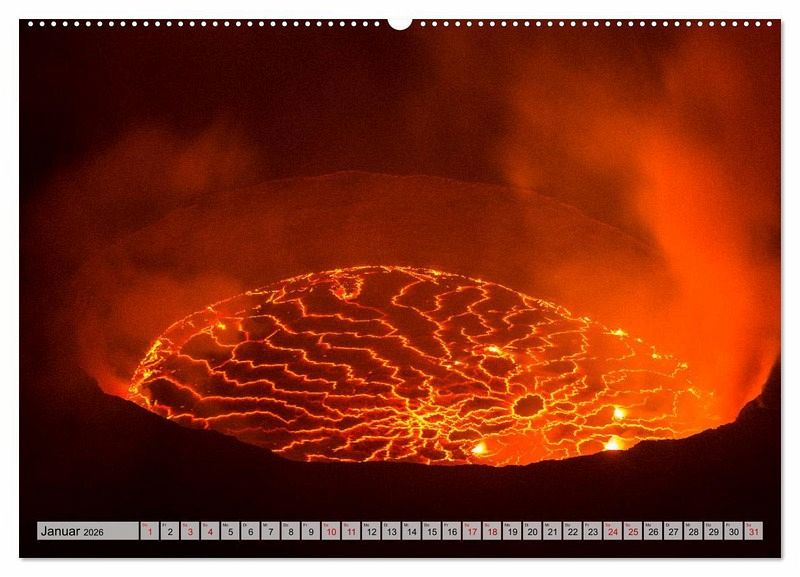 Januar: Lavasee am Nyiragongo (3470 m). Dieser zählt zu den Virunga-Vulkanen in der DR Kongo