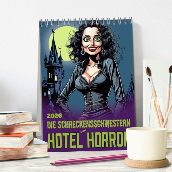 Ein wenig Grunge, ein wenig Gothic und ein wenig Horror, das alles zeichnet die Schreckensschwestern aus, die im perfekten Grunge-Stil in einer gedachten Graphic Novel das "Hotel Horror" betreiben. Die Schwestern und deren Aufgabenverteilung lernen Sie in diesem Kalender kennen. Sie können selbst entscheiden, ob das Hotel einen Urlaubsdestination für Sie ist - oder der Anlass zum Schmunzeln. Mit Unterstützung von künstlicher Intelligenz ist der Kalender entstanden.
