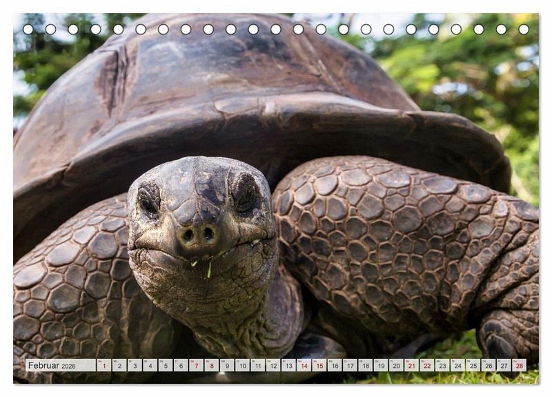 Februar: Eine der über 300 Seychellen-Riesenschildkröten auf Curieuse