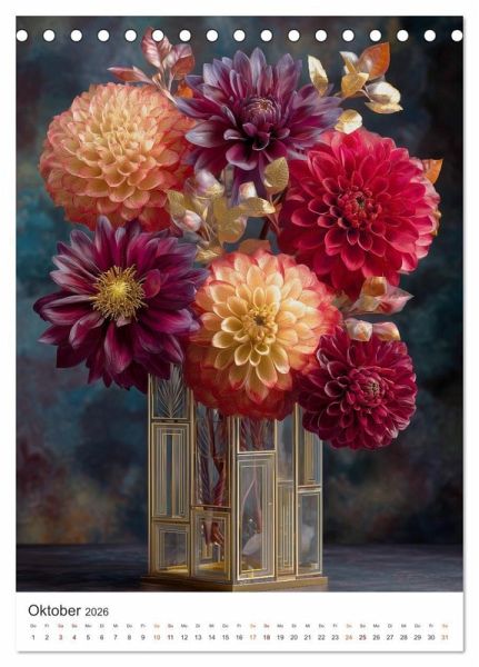 Jedes Bild ist wie ein Gemälde alter Meister: voller Tiefe, Farbe, Licht und Emotion. Ein Kalender für Menschen, die Kunst lieben, Blumen verehren und Schönheit im Detail erkennen. Perfekt als Geschenk und ein Blickfang für jede Wand. Alle hier gezeigten Bilder wurden mit Sorgfalt, Liebe und mit Hilfe einer KI generiert. Abschließend werden sie mit Bildbearbeitungsprogrammen überarbeitet und in den Kalender eingefügt.
