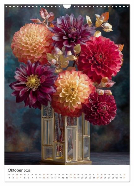Jedes Bild ist wie ein Gemälde alter Meister: voller Tiefe, Farbe, Licht und Emotion. Ein Kalender für Menschen, die Kunst lieben, Blumen verehren und Schönheit im Detail erkennen. Perfekt als Geschenk und ein Blickfang für jede Wand. Alle hier gezeigten Bilder wurden mit Sorgfalt, Liebe und mit Hilfe einer KI generiert. Abschließend werden sie mit Bildbearbeitungsprogrammen überarbeitet und in den Kalender eingefügt.