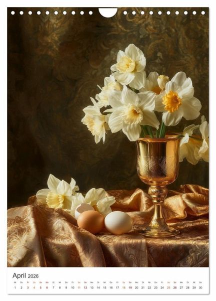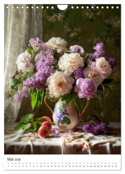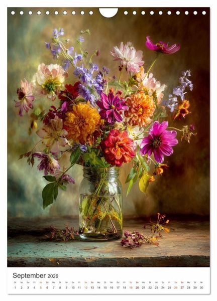 Jedes Bild ist wie ein Gemälde alter Meister: voller Tiefe, Farbe, Licht und Emotion. Ein Kalender für Menschen, die Kunst lieben, Blumen verehren und Schönheit im Detail erkennen. Perfekt als Geschenk und ein Blickfang für jede Wand. Alle hier gezeigten Bilder wurden mit Sorgfalt, Liebe und mit Hilfe einer KI generiert. Abschließend werden sie mit Bildbearbeitungsprogrammen überarbeitet und in den Kalender eingefügt.