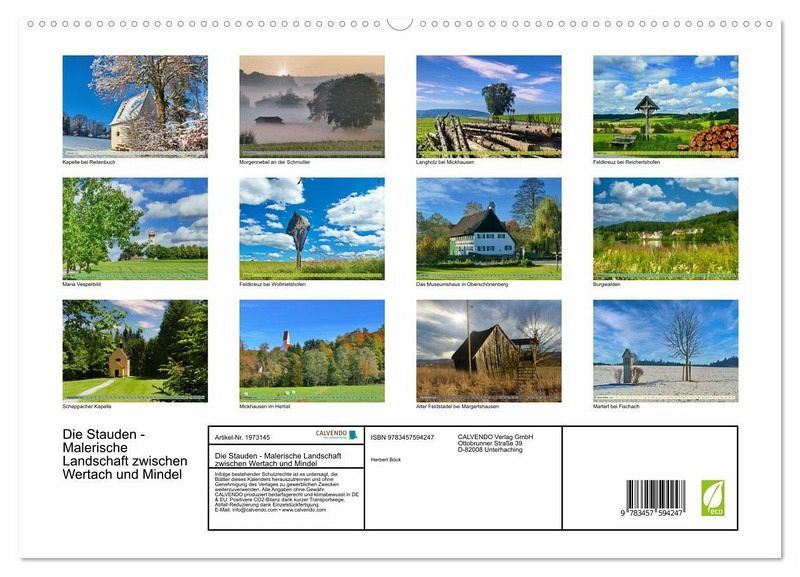 PREMIUM-LINIE - Brillanter Fotokalender mit 12 wunderschönen Motiven, Kunstdruck in Hochglanz in Museumsqualität.QUALITÄT - edle Materialien, stabile Rückwand mit 2 innovativen Einstecktaschen für eine optimale Präsentation an der Wand.NACHHALTIG - deutliche Abfallreduzierung durch bedarfsgerechte Einzelstückfertigung, umweltfreundliches FSC-zertifiziertes Papier, Produktion in Deutschland, klimabewusste Logistik.PERFEKTES GESCHENK - Kalender für Freunde und Familie, für Kinder und Erwachsene,jung und alt, zu Weihnachten, Geburtstag oder zwischendurch.Malerische Bilder einer Landschaft zwischen Wald und Wiesen von Autor(in): Herbert Böck