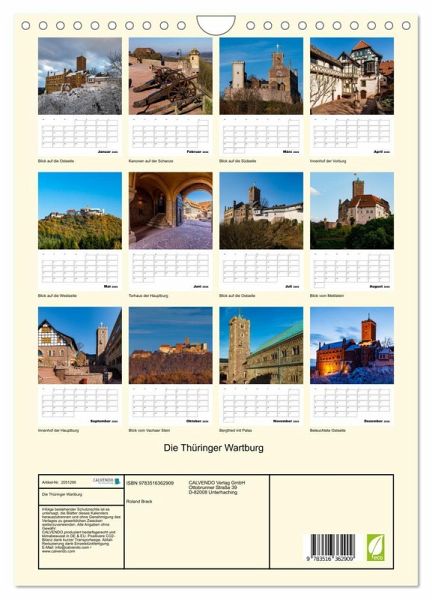 QUALITÄT - Hochwertiger Fotokalender mit 12 wunderschönen Motiven auf lichtbeständigem Bilderdruckpapier, robuste Spiralbindung mit Aufhängebügel.NACHHALTIG - deutliche Abfallreduzierung durch bedarfsgerechte Einzelstückfertigung, umweltfreundliches FSC-zertifiziertes Papier, Produktion in Deutschland, klimabewusste Logistik.PERFEKTES GESCHENK - Kalender für Freunde und Familie, für Kinder und Erwachsene, jung und alt, zu Weihnachten, Geburtstag oder zwischendurch.VIELFALT - Bildkalender in verschiedenen Formaten, z.B. DIN A5, DIN A4, DIN A3 sowie DIN A2. Ob Naturmotiv, Gemälde oder Fotos, ideal für ein persönliches Wohlfühlambiente.Ein Besuch auf der Wartburg am Rande des Thüringer Waldes von Autor(in): Roland Brack