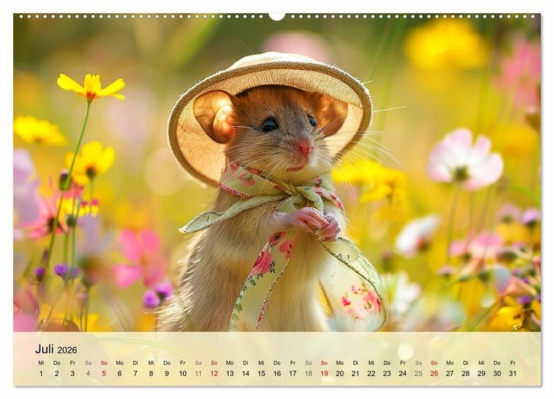 Erfreue dich an der aufregenden Welt der Mäuse-Fashion. Mit diesem lieblichen Kalender, der mit Hilfe von KI erstellt wurde, hat man das ganze Jahr über Vergnügen! Die pelzigen Models haben die unterschiedlichsten Orte erobert - sei es am sonnigen Strand, am Wasser, im Schnee, oder in der grünen Natur. Lass dich von ihrem bunten Stil inspirieren, denn die Mäuse wissen einfach, wie man sich gut kleidet und dabei jede Menge Spaß hat! Mach dein Jahr zu einem modischen Fest und erfreue dich an den charmantesten Nagetieren der Welt!"