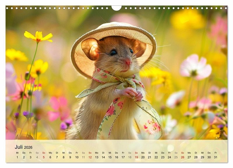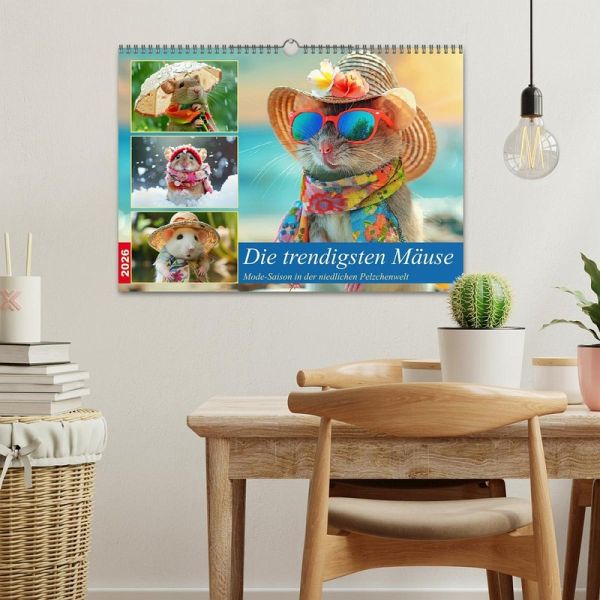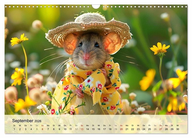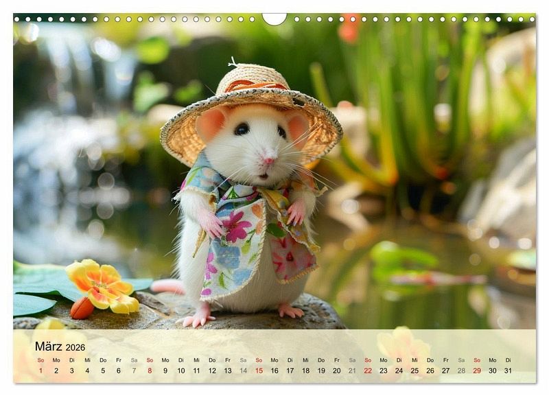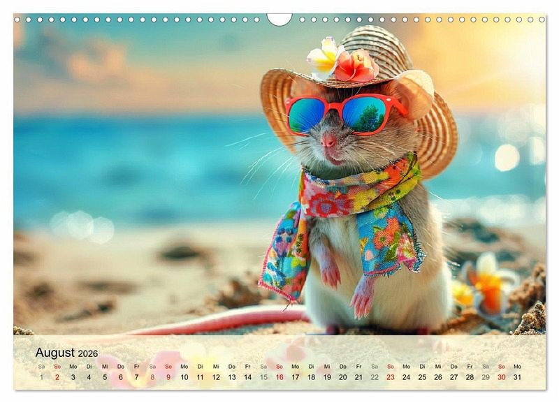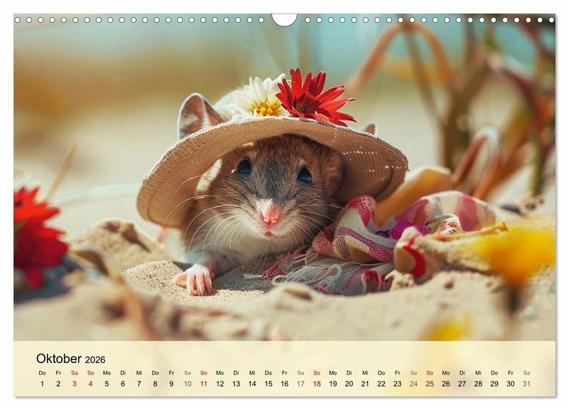Erfreue dich an der aufregenden Welt der Mäuse-Fashion. Mit diesem lieblichen Kalender, der mit Hilfe von KI erstellt wurde, hat man das ganze Jahr über Vergnügen! Die pelzigen Models haben die unterschiedlichsten Orte erobert - sei es am sonnigen Strand, am Wasser, im Schnee, oder in der grünen Natur. Lass dich von ihrem bunten Stil inspirieren, denn die Mäuse wissen einfach, wie man sich gut kleidet und dabei jede Menge Spaß hat! Mach dein Jahr zu einem modischen Fest und erfreue dich an den charmantesten Nagetieren der Welt!"