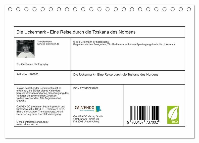 QUALITÄT - Hochwertiger Fotokalender mit 12 wunderschönen Motiven auf lichtbeständigem Bilderdruckpapier, robuste Spiralbindung.NACHHALTIG - deutliche Abfallreduzierung durch bedarfsgerechte Einzelstückfertigung, umweltfreundliches FSC-zertifiziertes Papier, Produktion in Deutschland, klimabewusste Logistik.PERFEKTES GESCHENK - Kalender für Freunde und Familie, für Kinder und Erwachsene, jung und alt, zu Weihnachten, Geburtstag oder zwischendurch.VIELFALT - Bildkalender in verschiedenen Formaten, z.B. DIN A5, DIN A4, DIN A3 sowie DIN A2. Ob Naturmotiv, Gemälde oder Fotos, ideal für ein persönliches Wohlfühlambiente.Reizvolle Landschaften und Orte der Uckermark von Autor(in): Tilo Grellmann