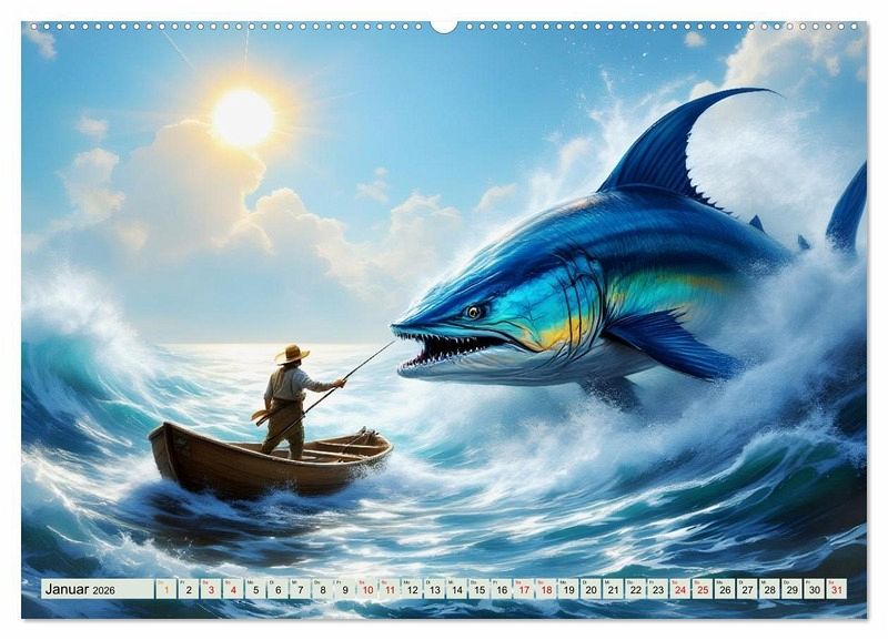 Tauchen Sie ein in die epische Welt des Fischfangs mit unserem außergewöhnlichen Kalender, der durch die Kraft der Künstlichen Intelligenz entstanden ist. Jeder Monat erzählt eine Geschichte von Mut, Geschicklichkeit und dem unaufhaltsamen Willen eines Fischers, der gegen gigantische Meeresungeheuer antritt. Diese beeindruckenden Bilder fangen den Moment der Gefahr ein, wo der Mensch auf die majestätische Wildheit der Natur trifft.