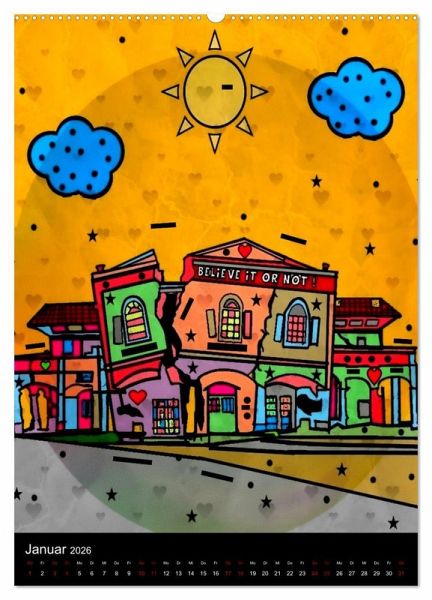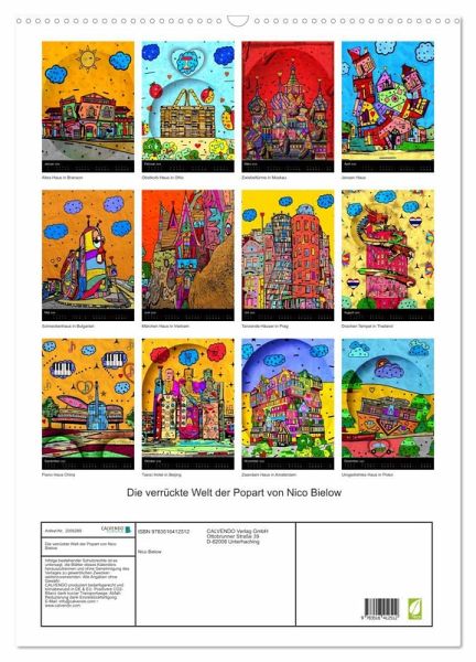 In den letzten zwei Jahren hat der Künstler Nico Bielow nach solchen Bauwerken gesucht und fand unglaublich tolle Werke auf der ganzen Welt. Ob nun in China ein verrücktes Hotel oder einfach nur in Prag die Tanzenden Häuser, der Künstler hat den schon in Natura ausgefallenen Bauten ein tolles Popart-Denkmal gesetzt. Reisen sie mit diesem Kalender einfach in eine verrückte Popart Welt mit.