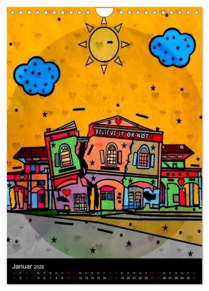In den letzten zwei Jahren hat der Künstler Nico Bielow nach solchen Bauwerken gesucht und fand unglaublich tolle Werke auf der ganzen Welt. Ob nun in China ein verrücktes Hotel oder einfach nur in Prag die Tanzenden Häuser, der Künstler hat den schon in Natura ausgefallenen Bauten ein tolles Popart-Denkmal gesetzt. Reisen sie mit diesem Kalender einfach in eine verrückte Popart Welt mit.