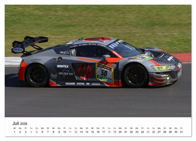 Audi bietet mit seinen Werksteams und vielen privaten Teams eine breite Palette an Motorsport Aktivitäten. Dieser Kalender bietet einen Querschnitt über einige dieser Fahrzeuge. Er enthält Bilder diverser Audi Rennfahrzeuge vom 24h Rennen auf dem Nürburgring, aus der NLS, dem ADAC GT Masters sowie der DTM.