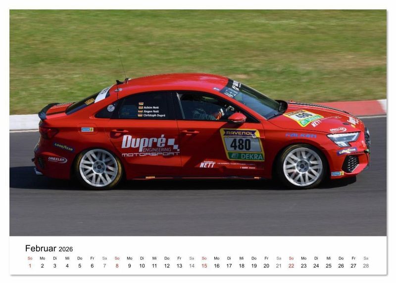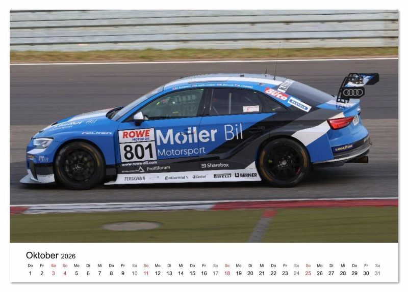Audi bietet mit seinen Werksteams und vielen privaten Teams eine breite Palette an Motorsport Aktivitäten. Dieser Kalender bietet einen Querschnitt über einige dieser Fahrzeuge. Er enthält Bilder diverser Audi Rennfahrzeuge vom 24h Rennen auf dem Nürburgring, aus der NLS, dem ADAC GT Masters sowie der DTM.