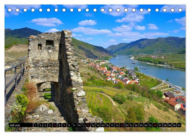 Die Wachau - eine liebliche Flusslandschaft in Österreich verzaubert die Besucher mit immer wieder neuen Blicken auf die Donau. Der Kalender zeigt neben bekannten Städten wie Dürnstein und Melk auch verwunschene Burgruinen und verträumte Ecken in den Weinbergen.