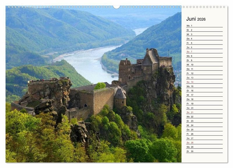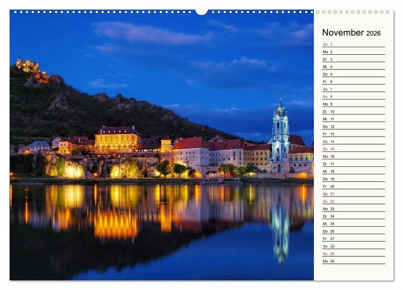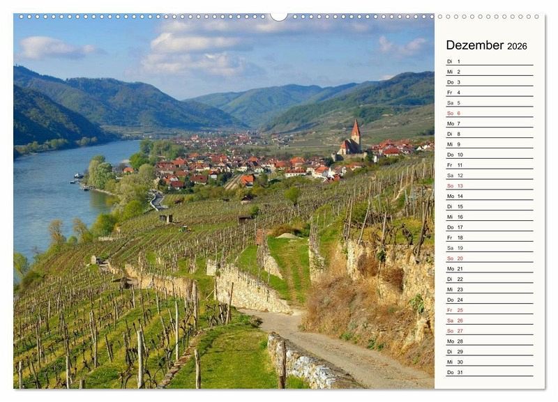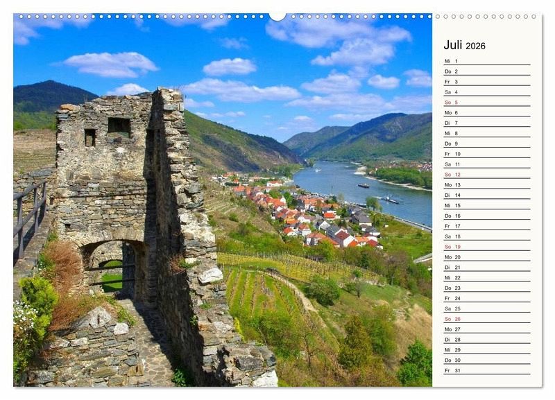 Die Wachau - eine liebliche Flusslandschaft in Österreich verzaubert die Besucher mit immer wieder neuen Blicken auf die Donau. Der Kalender zeigt neben bekannten Städten wie Dürnstein und Melk auch verwunschene Burgruinen und verträumte Ecken in den Weinbergen.