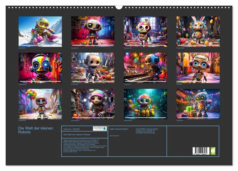Tauche ein in eine Welt voller technischer Wunderwerke und zauberhafter Kreaturen. Unser Wandkalender "Die Welt der kleinen Robots" nimmt dich mit auf eine aufregende Reise durch fantastische Roboterwelten. Jeden Monat präsentieren wir dir ein neues, detailverliebtes Motiv, das dich in Staunen versetzen wird. Unser Kalender zeigt dir die Vielfalt und Schönheit der kleinen Robots. Egal, ob du selbst ein Technikliebhaber bist oder ein Geschenk für einen Roboterverrückten suchst, dieser Kalender ist das perfekte Accessoire für jeden Raum. Die leuchtenden Farben und die hochwertige Druckqualität…mehr