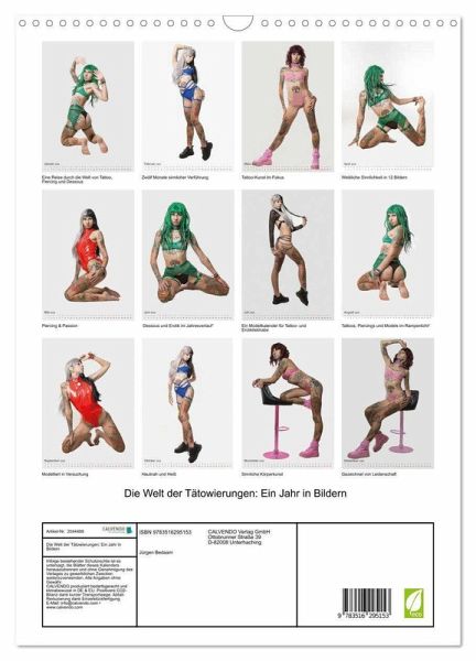 QUALITÄT - Hochwertiger Fotokalender mit 12 wunderschönen Motiven auf lichtbeständigem Bilderdruckpapier, robuste Spiralbindung mit Aufhängebügel.NACHHALTIG - deutliche Abfallreduzierung durch bedarfsgerechte Einzelstückfertigung, umweltfreundliches FSC-zertifiziertes Papier, Produktion in Deutschland, klimabewusste Logistik.PERFEKTES GESCHENK - Kalender für Freunde und Familie, für Kinder und Erwachsene, jung und alt, zu Weihnachten, Geburtstag oder zwischendurch.PERFEKTES GESCHENK - Kalender für Freunde und Familie, für Erwachsene, zu Weihnachten, Geburtstag oder zwischendurch.Ein Jahr der Erotik, Tattoos und Piercings von Autor(in): Jürgen Bedaam