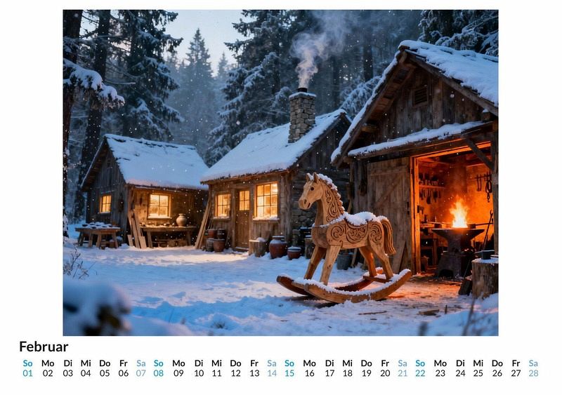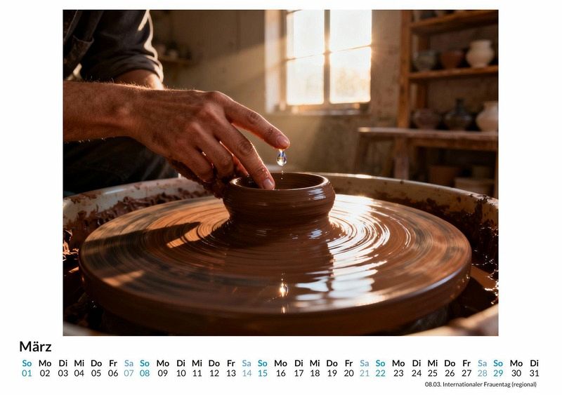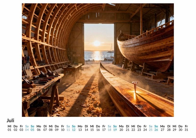 Es gibt Orte, an denen die Zeit stillzustehen scheint. Orte, an denen aus rohen Materialien mit Geduld und Können einzigartige Objekte entstehen. Diese Welt der konzentrierten Kreativität und des traditionellen Wissens wird in diesem Kalender Monat für Monat lebendig. Dieser Kalender ist eine gute Wahl: * Für Liebhaber traditioneller Handwerkskunst. * Für alle, die eine besondere Wanddekoration mit Charakter suchen. * Für jene, die ein außergewöhnliches Geschenk für kreative Menschen finden möchten. Der Kalender "Die Welt des Handwerks" fängt die besondere Stimmung dieser kreativen Orte ein. Jeder Monat enthüllt eine neue Szene, die den Geist des jeweiligen Metiers atmet: eine sonnendurchflutete Schreinerei, in der der Duft von Holz in der Luft liegt, eine rustikale Schmiede, in der die Funken sprühen, oder eine ruhige Töpferei voller unfertiger Tongefäße. Die Darstellungen sind keine Fotografien realer Orte. Vielmehr wurden diese Motive durch die kreative Kraft von Algorithmen und Daten zum Leben erweckt, um die Essenz des Handwerks in einer idealisierten und stimmungsvollen Form zu zeigen. Was der Kalender bietet: * Zwölf ästhetische Monatsmotive aus der Welt des Handwerks. * Ein praktisches Kalendarium für die Jahresplanung. * Ein visueller Begleiter, der das ganze Jahr über inspiriert. Dieser Kalender ist eine Hommage an die Schönheit des Schaffensprozesses und die Orte, an denen er stattfindet. Er feiert die Konzentration, die Hingabe und die besondere Atmosphäre, die in jedem handgefertigten Stück mitschwingt. Die zwölf Motive laden dazu ein, die Vielfalt und Ästhetik traditioneller Berufe neu zu entdecken. Eine Entdeckungsreise durch die faszinierenden Bilder dieser Werkstätten wartet darauf, angetreten zu werden.