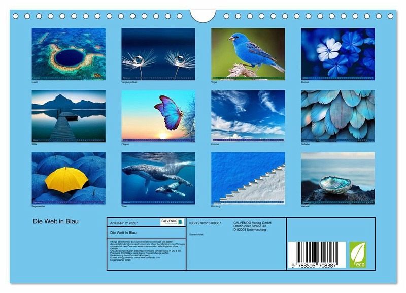 Die Welt in Blau , ein Kalender, der die faszinierende Vielfalt einer einzigen Farbe einfängt.