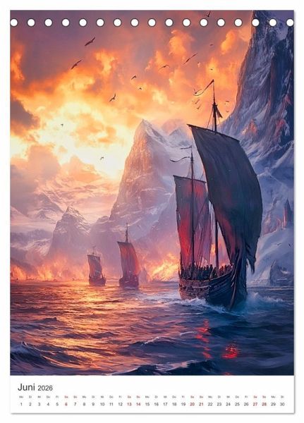 Der neue KI - generierte Kalender nimmt dich mit in die epische Welt der Wikinger: von atemberaubenden Fjorden bis zu gewaltigen Schlachten. Kraftvolle Motive zeigen das tägliche Leben der Nordmänner, ihre Abenteuer auf See und ihre enge Verbindung zur Natur und den Göttern. Perfekt für Fans der nordischen Mythologie und alle, die das raue Leben der Wikinger bewundern!