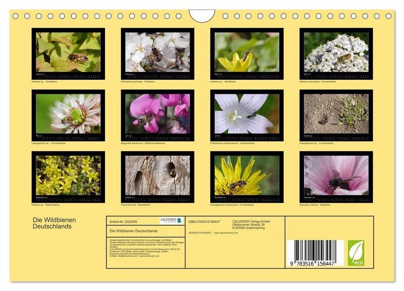 QUALITÄT - Hochwertiger Fotokalender mit 12 wunderschönen Motiven auf lichtbeständigem Bilderdruckpapier, robuste Spiralbindung mit Aufhängebügel.NACHHALTIG - deutliche Abfallreduzierung durch bedarfsgerechte Einzelstückfertigung, umweltfreundliches FSC-zertifiziertes Papier, Produktion in Deutschland, klimabewusste Logistik.PERFEKTES GESCHENK - Kalender für Freunde und Familie, für Kinder und Erwachsene, jung und alt, zu Weihnachten, Geburtstag oder zwischendurch.VIELFALT - Bildkalender in verschiedenen Formaten, z.B. DIN A5, DIN A4, DIN A3 sowie DIN A2. Ob Naturmotiv, Gemälde oder Fotos, ideal für ein persönliches Wohlfühlambiente.Fotografische Einblicke in das Leben von 12 verschiedenen einheimischen Wildbienen von Autor(in): Jeroen Everaars