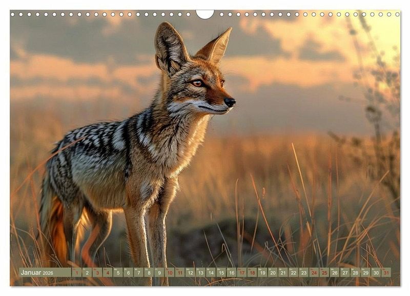 Januar: Der Schabrackenschakal lebt in der afrikanischen Savanne.