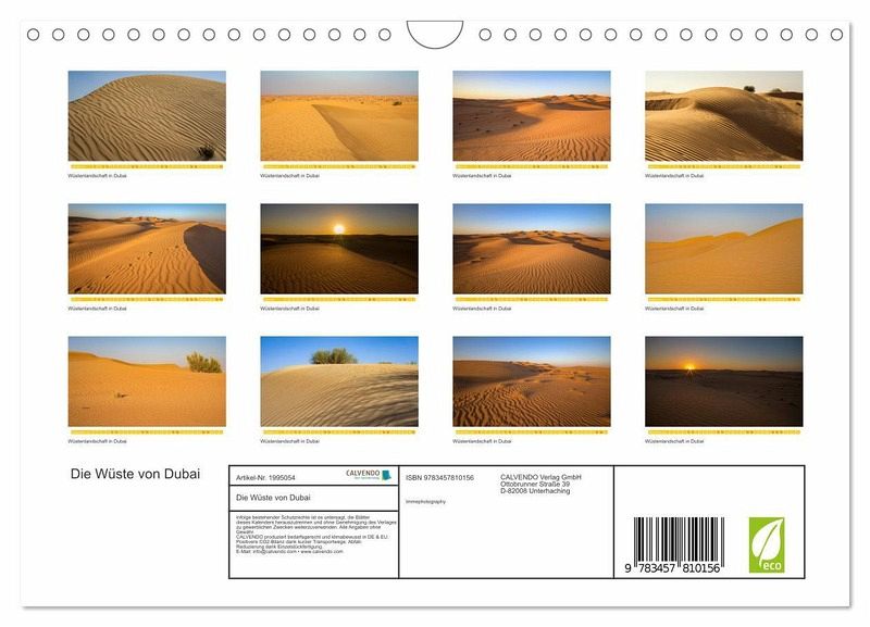 QUALITÄT - Hochwertiger Fotokalender mit 12 wunderschönen Motiven auf lichtbeständigem Bilderdruckpapier, robuste Spiralbindung mit Aufhängebügel.NACHHALTIG - deutliche Abfallreduzierung durch bedarfsgerechte Einzelstückfertigung, umweltfreundliches FSC-zertifiziertes Papier, Produktion in Deutschland, klimabewusste Logistik.PERFEKTES GESCHENK - Kalender für Freunde und Familie, für Kinder und Erwachsene, jung und alt, zu Weihnachten, Geburtstag oder zwischendurch.VIELFALT - Bildkalender in verschiedenen Formaten, z.B. DIN A5, DIN A4, DIN A3 sowie DIN A2. Ob Naturmotiv, Gemälde oder Fotos, ideal für ein persönliches Wohlfühlambiente.Die Wüste von Dubai mit seiner atemberaubenden Landschaft. von Autor(in): Jörg Imme