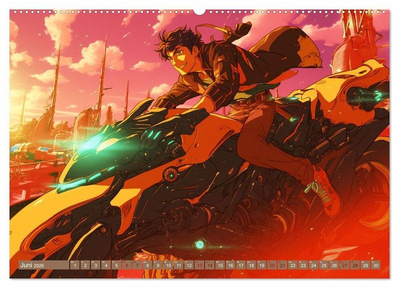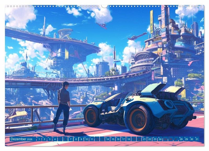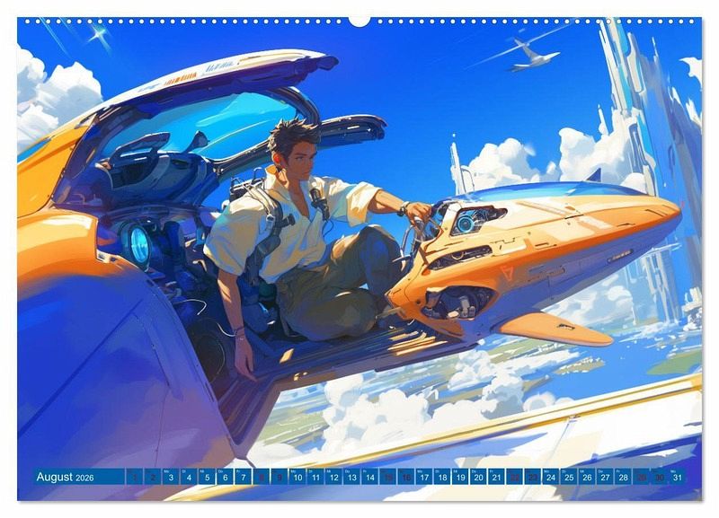 Willkommen in einer Welt, die die Grenzen der Vorstellungskraft sprengt! Dieser Kalender nimmt Sie mit auf eine Reise durch Anime-Bilder einer fantastischen Welt voller fliegender Maschinen, Cyborg-Tiere und ultraschneller Autos.