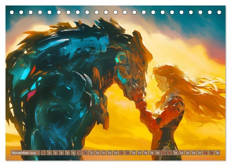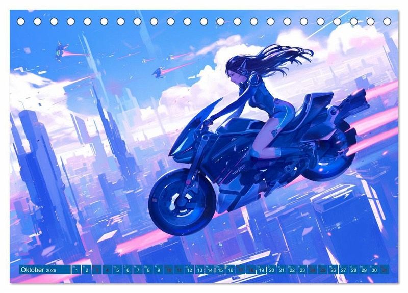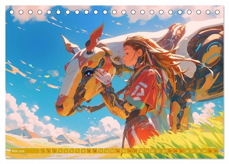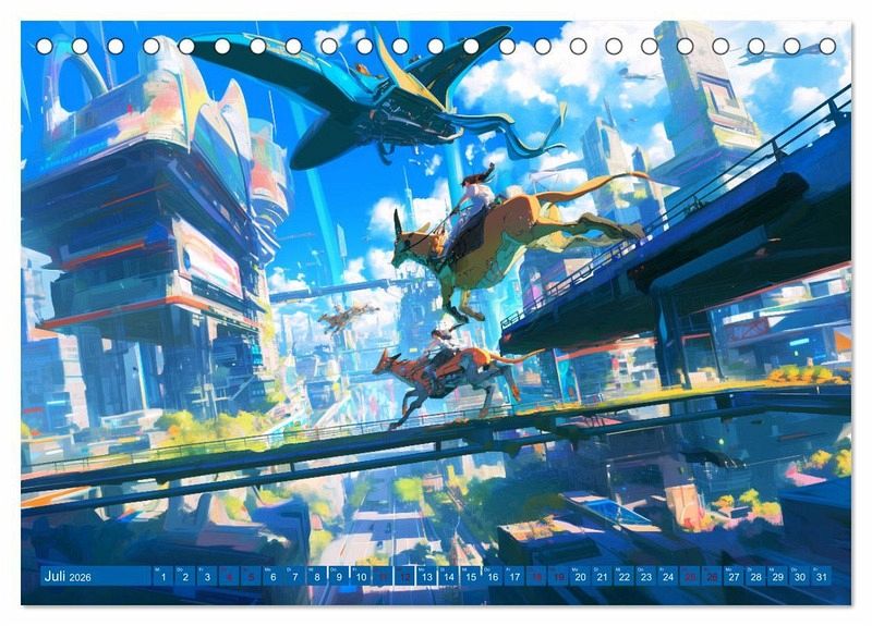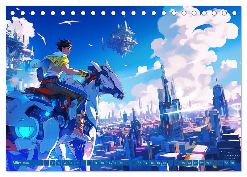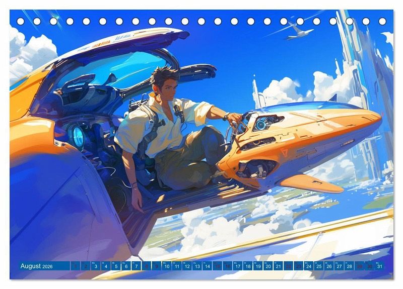 Willkommen in einer Welt, die die Grenzen der Vorstellungskraft sprengt! Dieser Kalender nimmt Sie mit auf eine Reise durch Anime-Bilder einer fantastischen Welt voller fliegender Maschinen, Cyborg-Tiere und ultraschneller Autos.