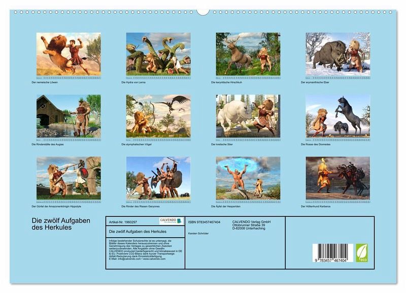 PREMIUM-LINIE - Brillanter Fotokalender mit 12 wunderschönen Motiven, Kunstdruck in Hochglanz in Museumsqualität.QUALITÄT - edle Materialien, stabile Rückwand mit 2 innovativen Einstecktaschen für eine optimale Präsentation an der Wand.NACHHALTIG - deutliche Abfallreduzierung durch bedarfsgerechte Einzelstückfertigung, umweltfreundliches FSC-zertifiziertes Papier, Produktion in Deutschland, klimabewusste Logistik.PERFEKTES GESCHENK - Kalender für Freunde und Familie, für Kinder und Erwachsene, jung und alt, zu Weihnachten, Geburtstag oder zwischendurch.Die Heldentaten einer antiken Legende - Herkules. von Autor(in): Karsten Schröder
