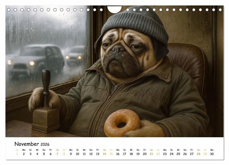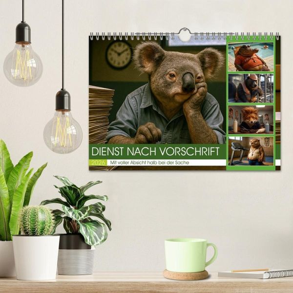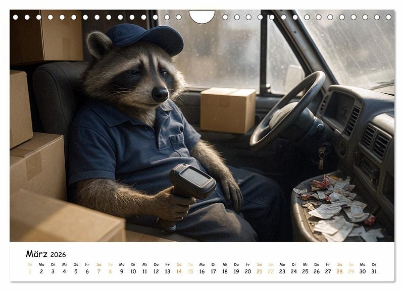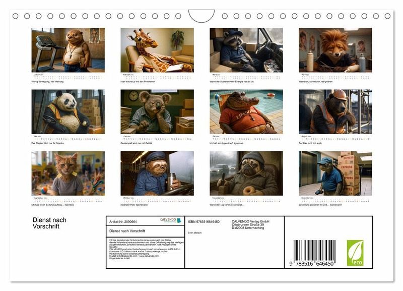 Ob Brummbär auf Baustelle, müder Mops im Kassenhäuschen oder Waschbär im Lieferstress - dieser Kalender zeigt Monat für Monat tierische Kollegen bei ihrem ganz eigenen Arbeitstempo. Ultra-realistische, cineastische Tierporträts treffen auf stoische Gelassenheit, Müdigkeit und innerliche Kündigung mit Stil.
