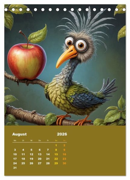 Möchten Sie jeden Tag mit einem Lächeln auf dem Schnabel ... äh, Gesicht beginnen? Dieser Kalender mit 12 lustige Vogelillustrationen ist perfekt für alle, die Vögel und Humor lieben oder einfach ihren Alltag aufpeppen möchten.