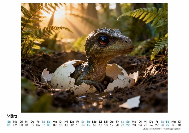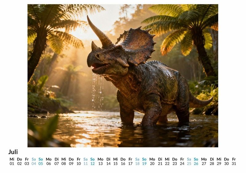 Das Grollen eines Tyrannosaurus Rex hallt durch dichte Urwälder. Ein Pteranodon gleitet majestätisch über eine zerklüftete Küstenlandschaft. Der Kalender "Dinosaurier & prähistorische Welten" fängt die rohe Kraft und die Faszination einer längst vergangenen Epoche in dramatischen Szenen ein. Dieser Kalender ist eine ausgezeichnete Wahl für: * Alle, die von der Welt der Dinosaurier fasziniert sind. * Liebhaber von detailreichen und cineastischen Szenerien. * Als Geschenk für Paläontologie Begeisterte und Fans prähistorischer Abenteuer. Jeder Monat präsentiert eine neue, lebensechte Szene. Von gewaltigen Herden, die durch weite Ebenen ziehen, bis hin zu spannungsgeladenen Jagdszenen in der Dämmerung. Die zwölf Monatsmotive sind das Ergebnis eines kreativen Dialogs zwischen menschlicher Vorstellungskraft und der Rechenleistung moderner Algorithmen. Sie zeigen die Giganten der Urzeit in einer Detailfülle, die sie fast greifbar erscheinen lässt. Was der Kalender bietet: * Zwölf einzigartige Darstellungen von Dinosauriern und prähistorischen Landschaften. * Ein Kalendarium, das Platz für eigene Notizen lässt. * Ein dekorativer Wandschmuck für das ganze Jahr. Der Kalender "Dinosaurier & prähistorische Welten" ist mehr als nur ein Zeitplaner. Er ist eine tägliche Erinnerung an die gewaltige und beeindruckende Geschichte unseres Planeten. Eine Einladung, die Welt durch die Augen ihrer einstigen Herrscher zu sehen. Ein Blick auf die Monatsansichten lohnt sich.